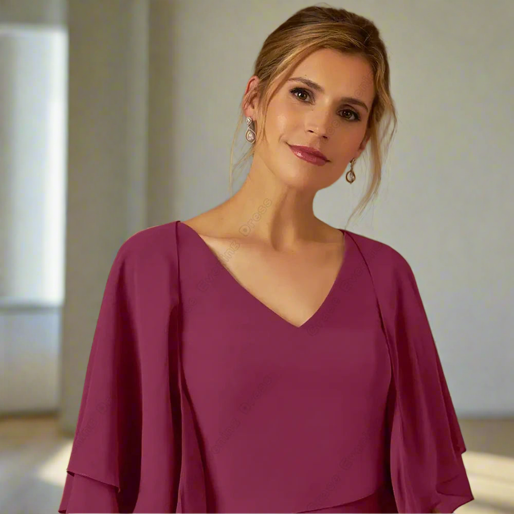 Step into timeless elegance with this floor-length chiffon gown, designed especially for mothers of the bride or groom. The flattering silhouette features delicate lace accents, a built-in bra for comfort, and a concealed back zipper for a seamless fit. Crafted from lightweight chiffon, this gown flows beautifully, making it perfect for weddings, evening parties, and other formal occasions.